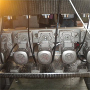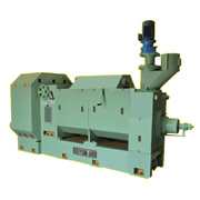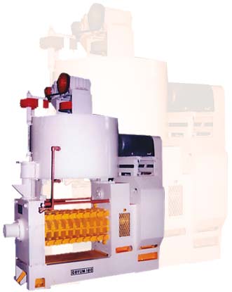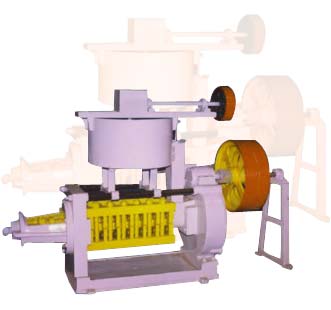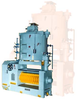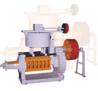 The base is made out of high grade quality steel. It has a double reduction gear box with steel fabricated gears and chamber. The sizes of the frames are as follows: 6 inches diameter x 33 inches long and 7 inches diameter x 44 inches long. The worm assembly and cone point are case hardened, which results in a superior quality of oil and cake. The main worm shaft can be withdrawn without disturbing the gear box. The crammer shaft allows for extra cramming of the seed or cake in the feed body. A two stage pre-conditioner is integrated into the machine design.