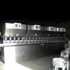 5 high-steam jackets of 66" diameter for efficient cooking of seed. Pipe fitting contains safety valve, steam spray pipes, pressure gauge, steam valves and steam traps. Exhaust fan is also provided to extract excess steam or moisture from cooking chambers. Kettle is supported separately on a fabricated structure.